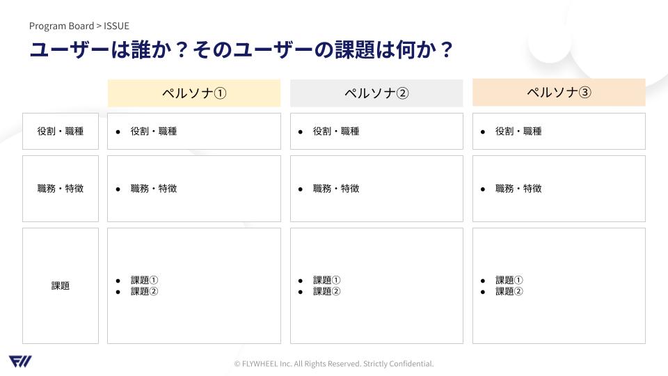 ゼロベースでの議論はハードルが高いため、共通認識を得たターゲットペルソナ・ユースケースを用いて、まずはたたき台を作成します。