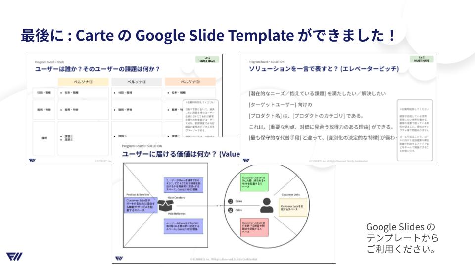 テンプレートに従い作成していくことで、議論の土台が整理され、最終的なプロダクトミッションの策定までカバーできます。