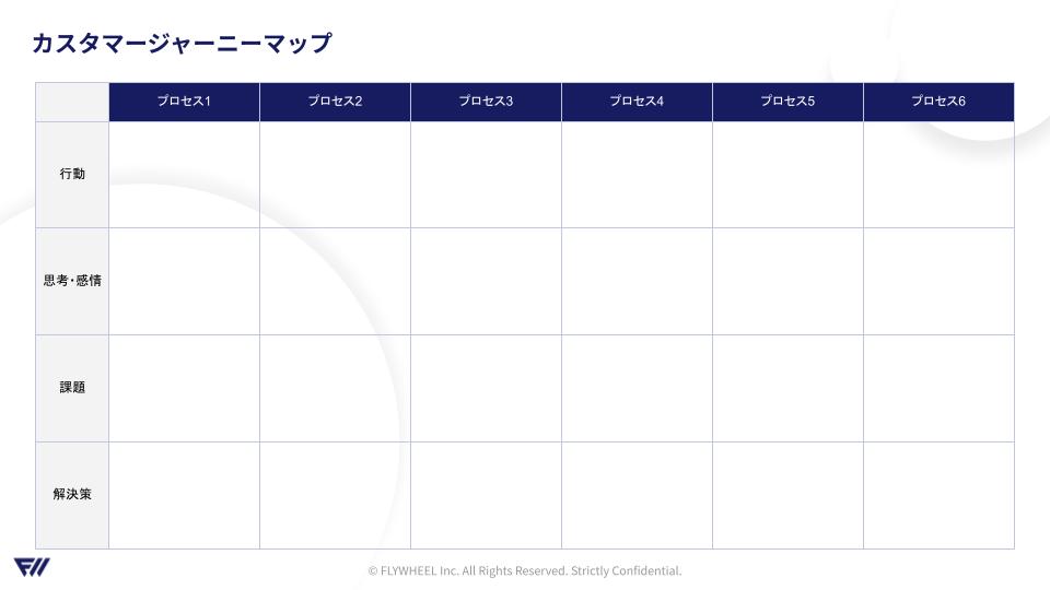 ユースケースにおける具体的な行動(横軸)と課題、感情の流れ(縦軸)を図示し、「いつ、どのような目的で利用するか」という具体的な利用イメージを明確にしていきます。