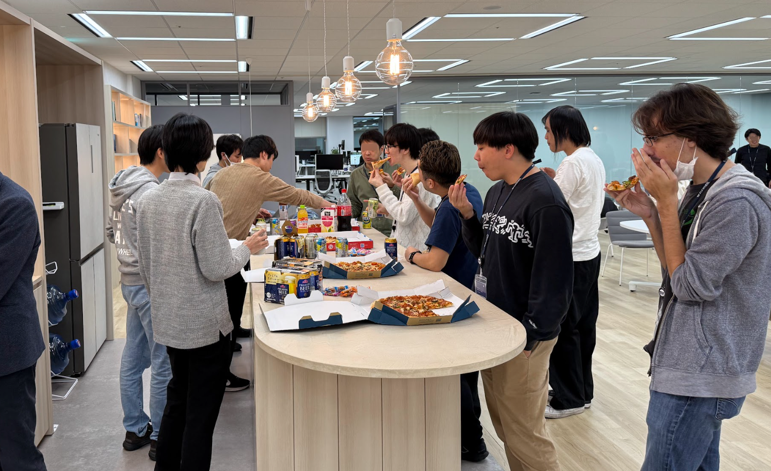 プレゼンテーション後も熱気は冷めやらず、そのままオフィス内で懇親会を行いました。アイデアの感想戦や今後実際にプロダクトやツール化するときにもっと考慮すべきことは何かなどの議論が継続して行われ、最後の最後まで熱を帯びた夜となりました。