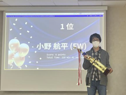 各企業の猛者の熾烈な争いの中、終了 1 分前に最終問題を正答し、ただ一人全問正解を達成して優勝を勝ち取りました。