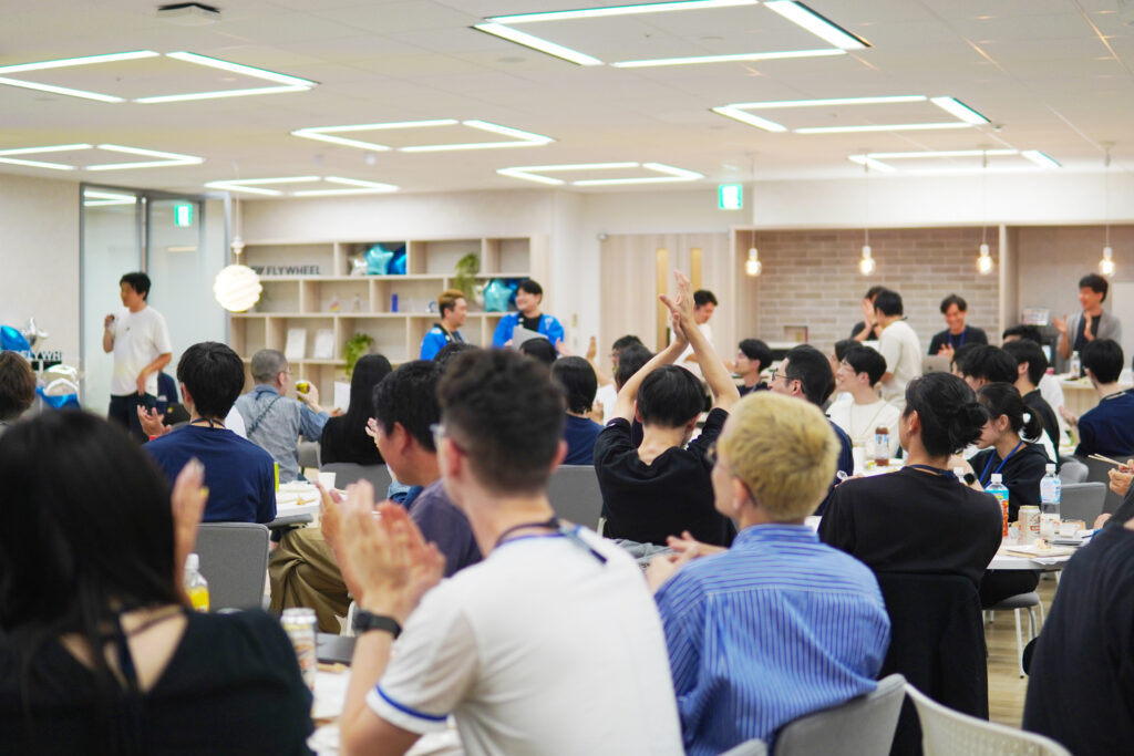 QBR で頭を使ったあとは、待ちに待ったイベントタイム!今回は、新オフィスの目玉でもある広々としたカフェテリア兼イベントスペースをフル活用して、移転イベントを開催しました。広い空間ってやっぱり気持ちがいいですね!