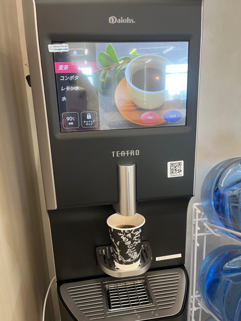 カフェテリアには、最新のウォーターサーバーも設置されました!お水のほかに麦茶、コンポタ、レモン水も選べます!これは嬉しいですね!ちょっとした休憩時間も充実しそうです。